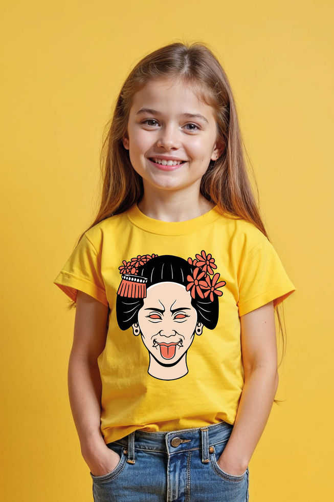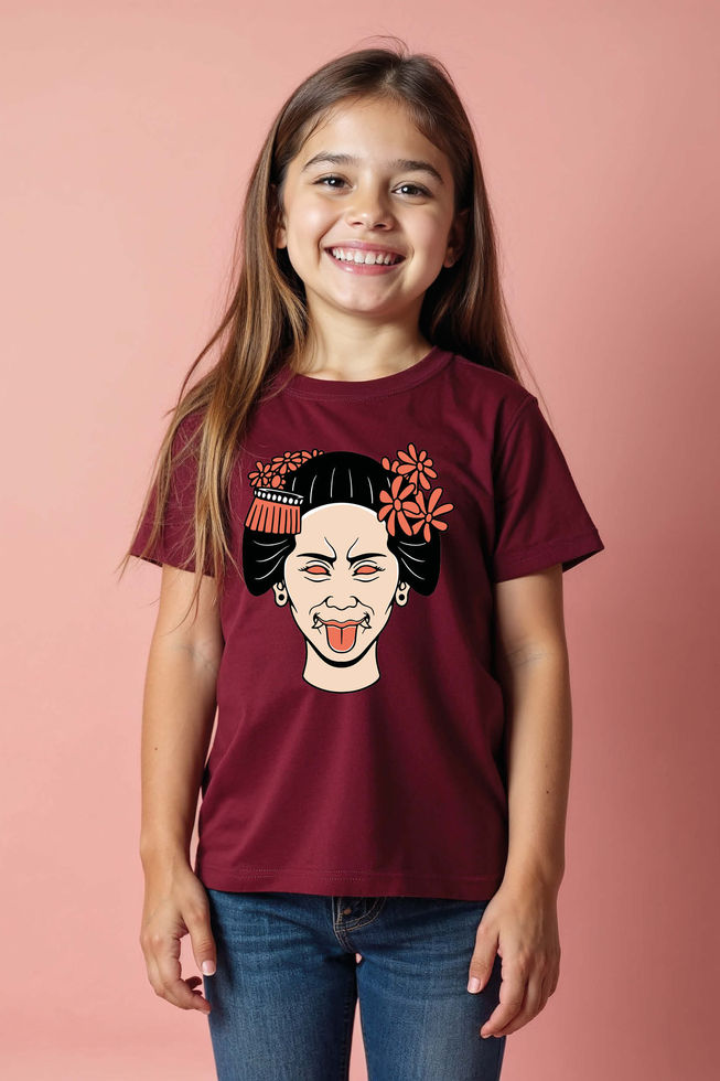 Kids' Mischievous Geisha Face T-Shirt Modern Cool Cartoon Kids T-Shirt