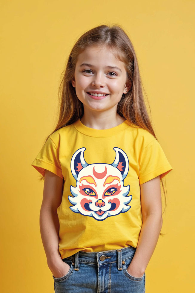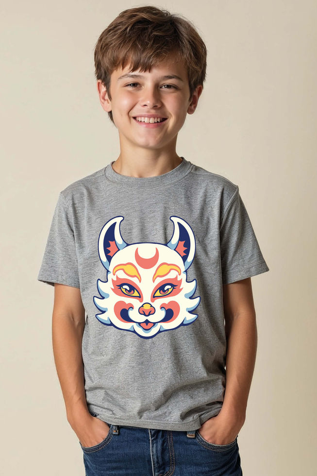 Kids' Mystical Kitsune Fox Mask Graphic T-Shirt Creative Soft Printed Kids Tee