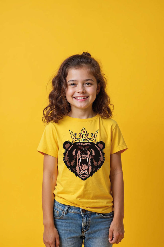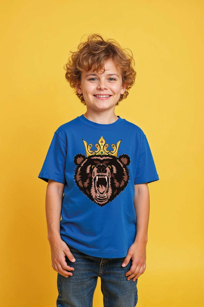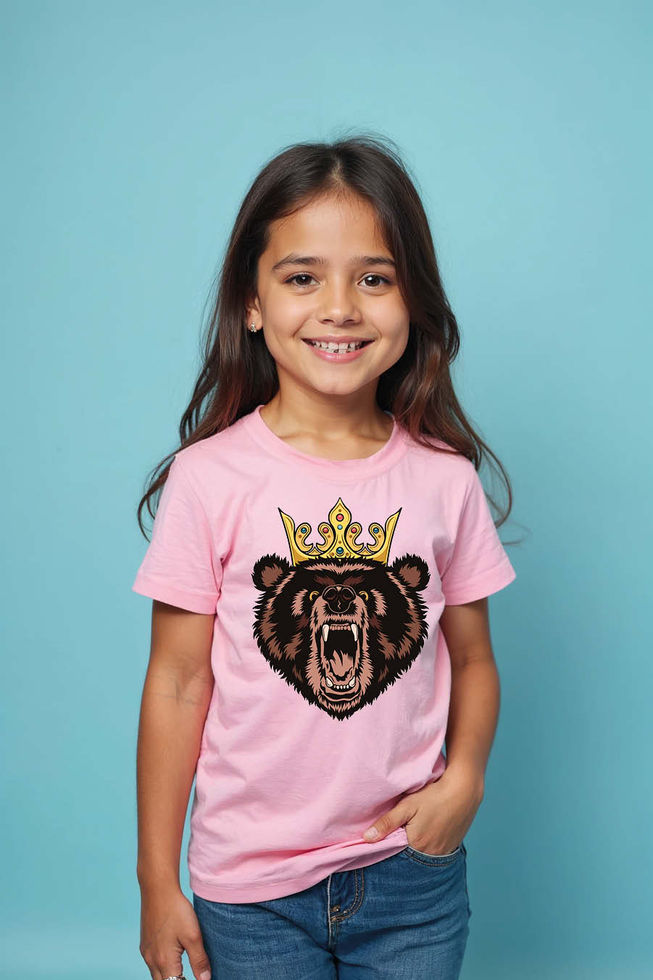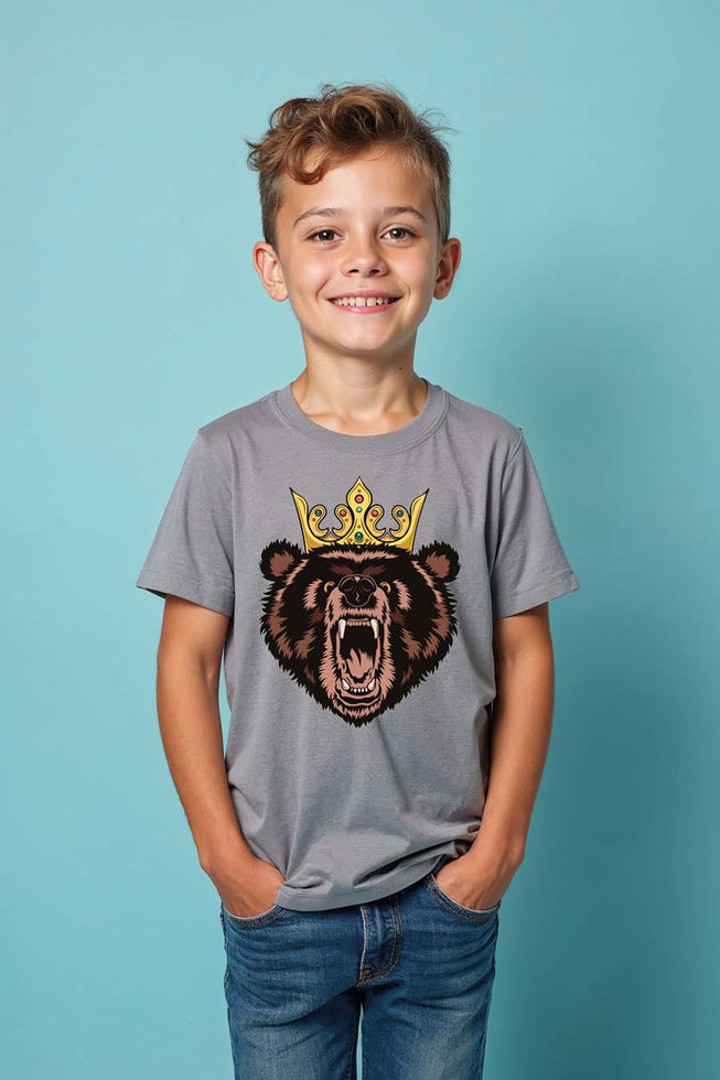 Kids Roaring Bear King with Crown T-Shirt Fashion Unisex Kids Graphic Tee