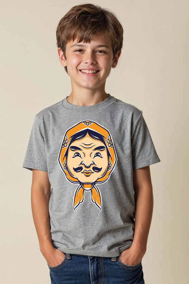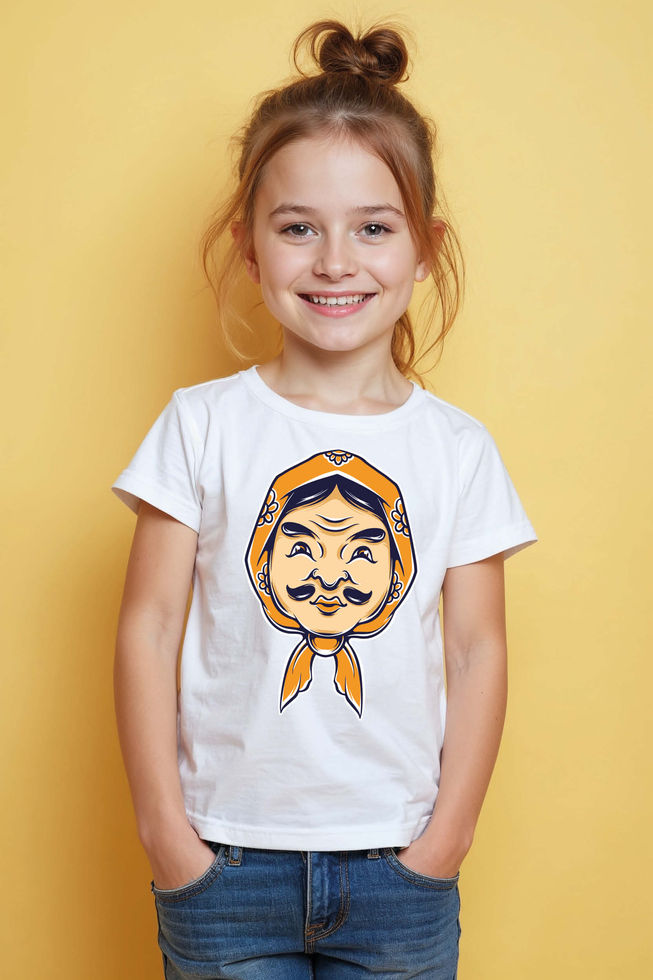 Kids Stylized Japanese Okame Face T-Shirt Stylish Stylish Kids Graphic T-Shirt