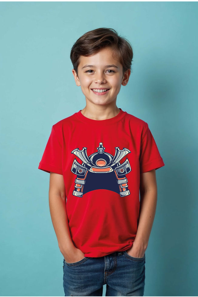 Kids Stylized Japanese Samurai Helmet T-Shirt Trendy Cute Kids Typography