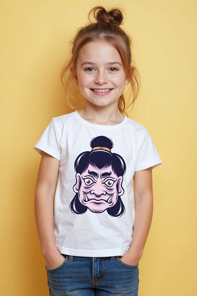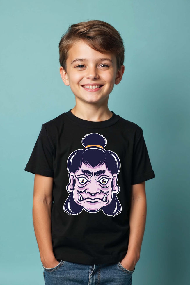 Kids Traditional Japanese Hannya Mask T-Shirt Soft Casual Kids Printed T-Shirt