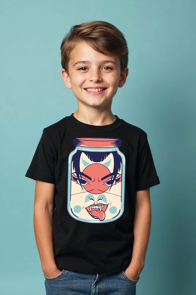Kids' Trapped Demon Face in a Jar T-Shirt Colorful Cartoon Printed T-Shirt