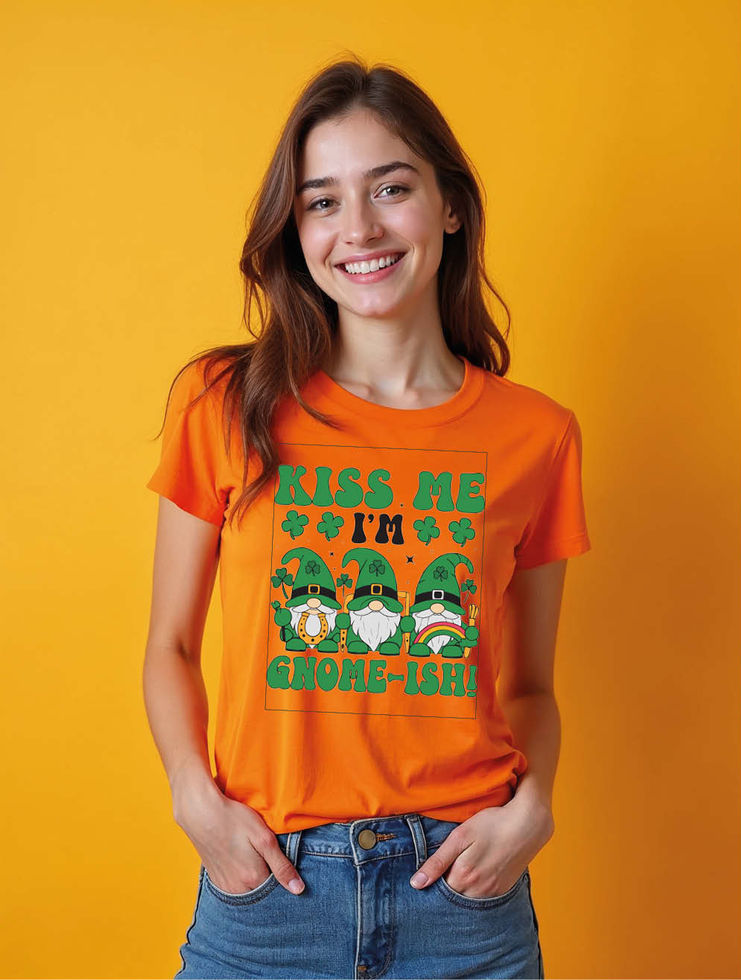 kiss me i'm gnome ish! Cool Women’s Printed Graphic Typography T-Shirt – Buy Now
