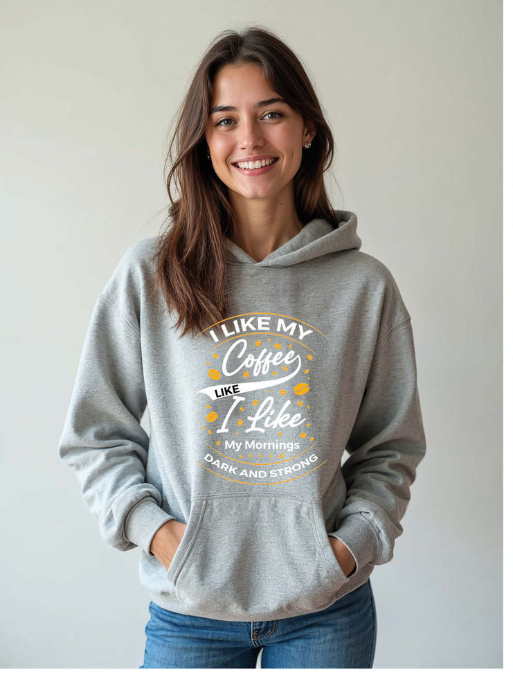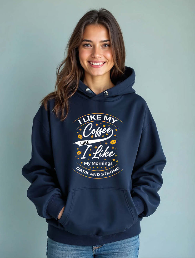 l like my coffee like i like my morning dark and strong Women's Graphic Hoodies