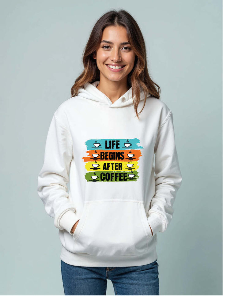 life begins after coffee Chic Women’s Quote Stylish Graphic Hoodies – Sale
