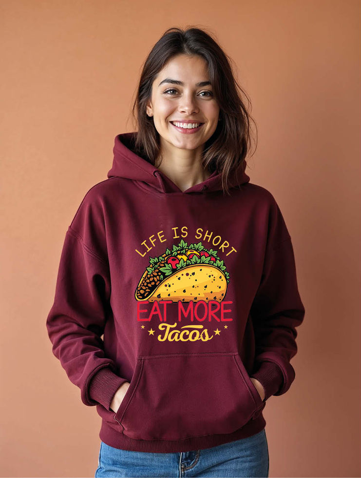 life is short eat more tacos Woman's Printed Graphic Stylish Hoodies