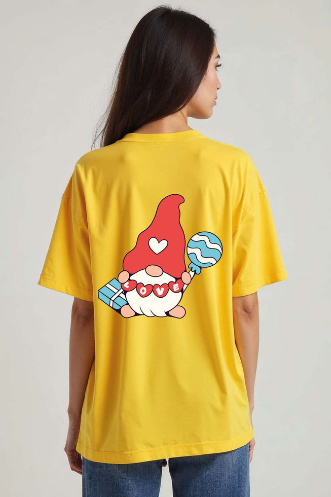 Love Gnome with Lollipop and Gift Unisex Oversized Drop Shoulder Tees