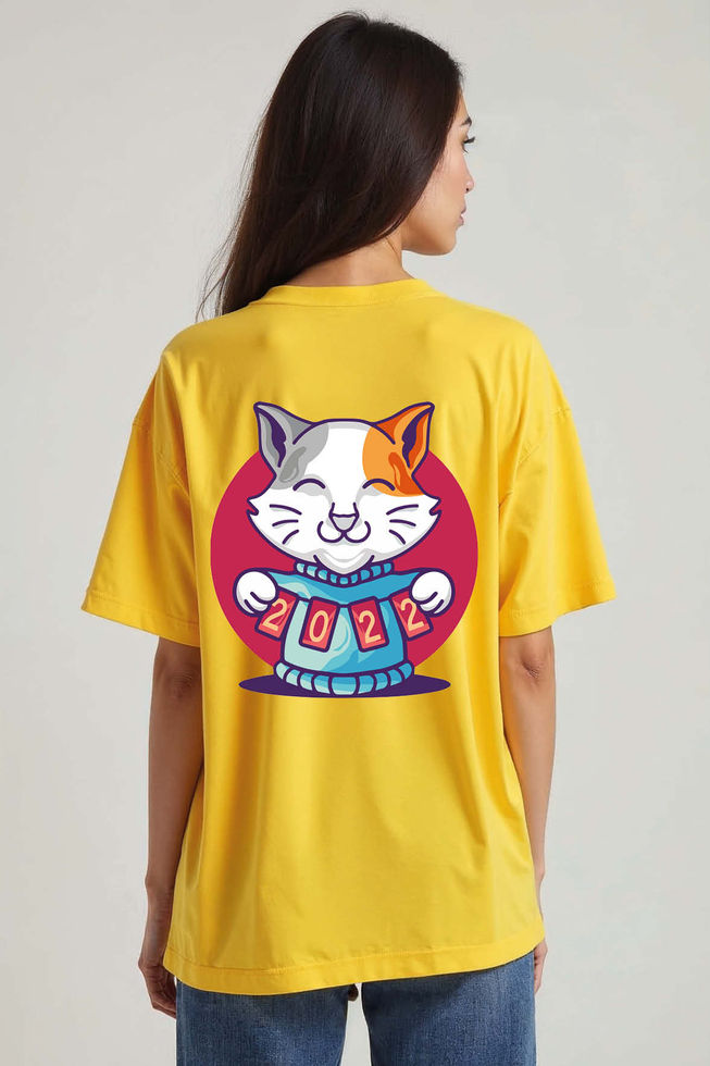 Lucky Cat New Year Banner Unisex Oversized Drop Shoulder Tees