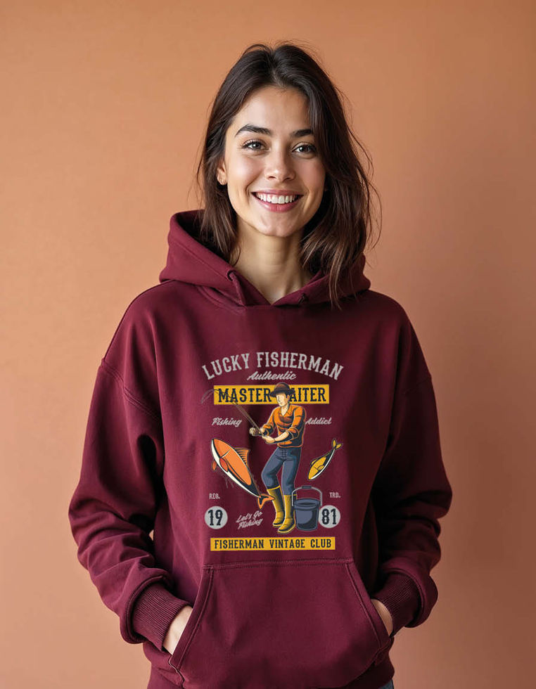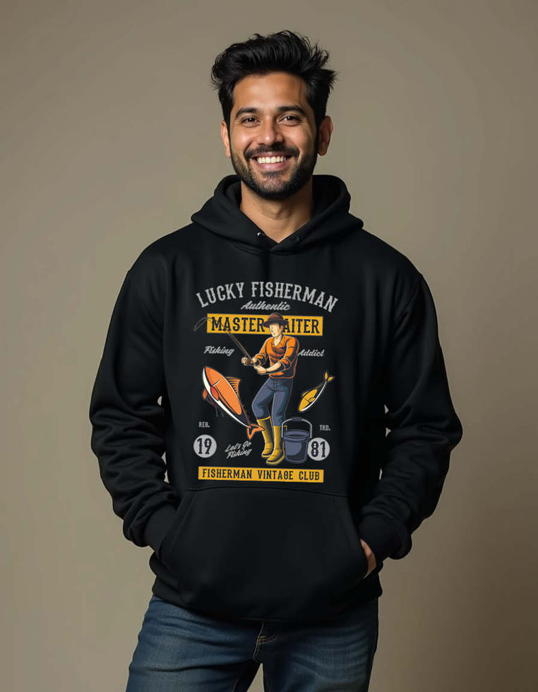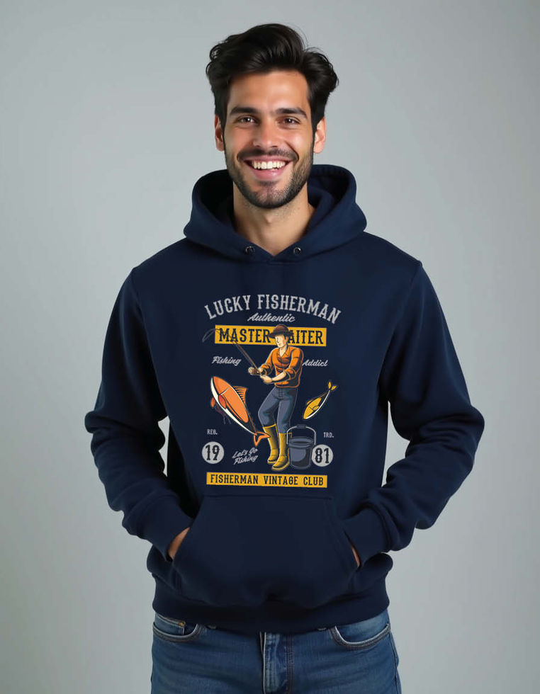 Lucky fisherman master vintage club Unisex Graphic Printed Hoodies