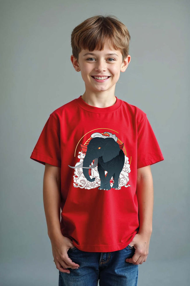 Majestic Dark Elephant Japanese Art Red Kids T-Shirt Cotton Kids Graphic Tee