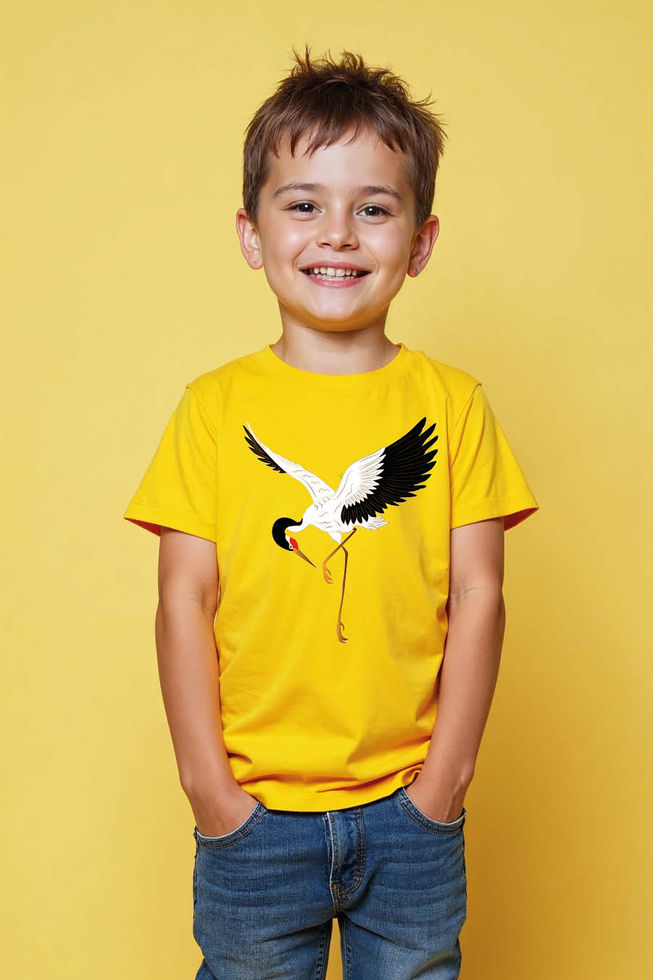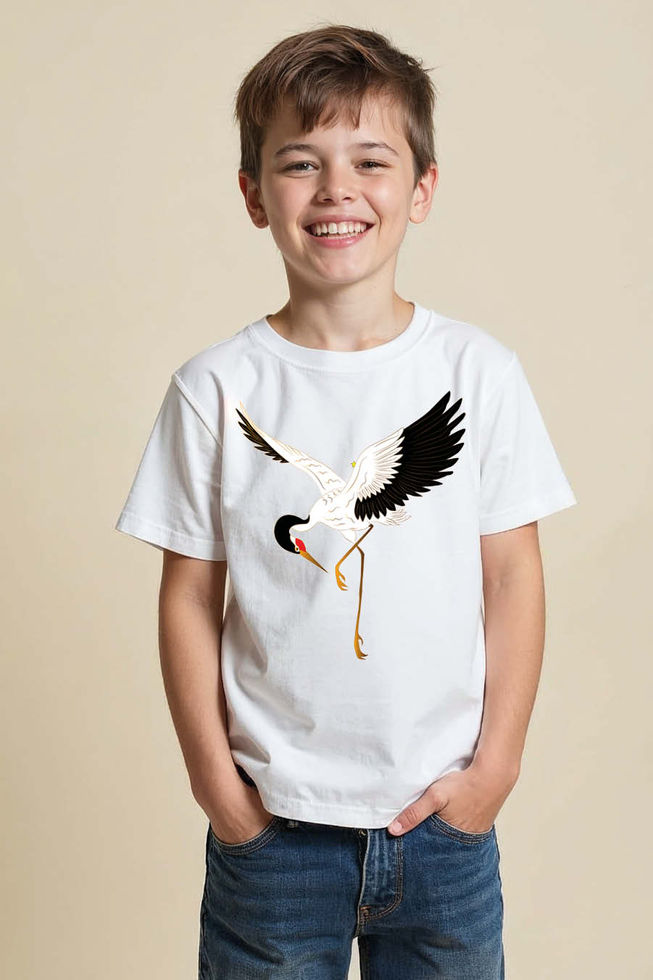 Majestic Japanese Crane Bird Grey Kids T-Shirt Cotton Printed T-Shirt
