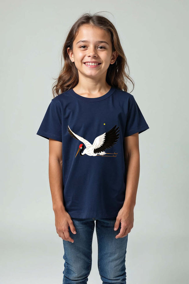 Majestic Japanese Flying Crane Kids T-Shirt Stylish Kids Graphic Tee