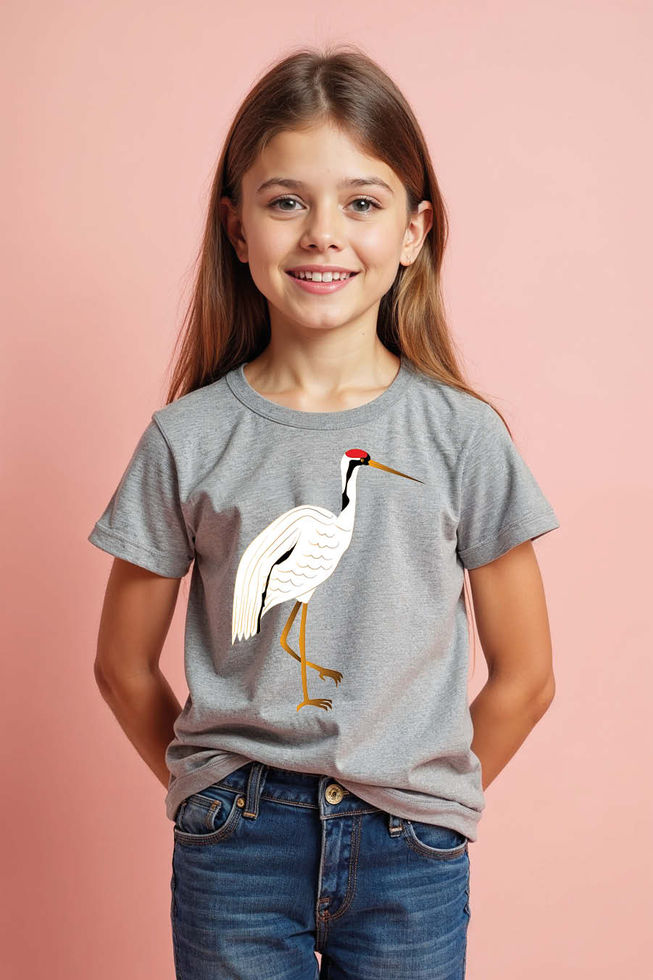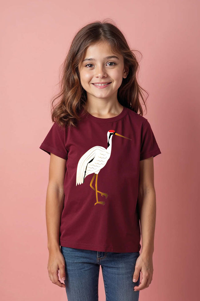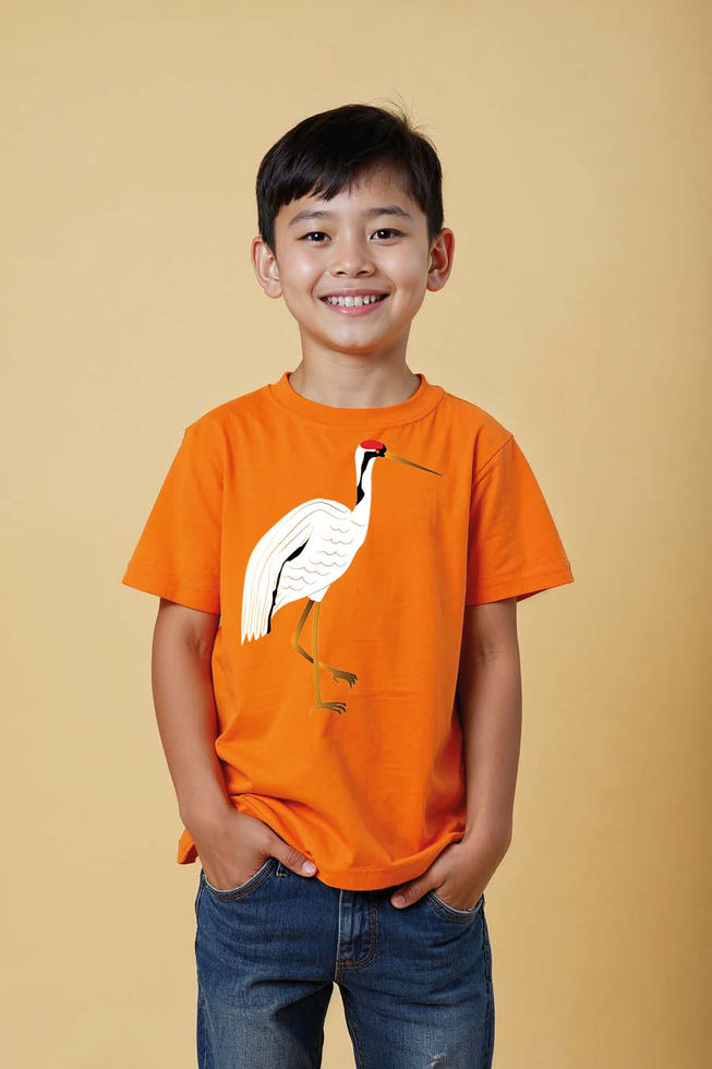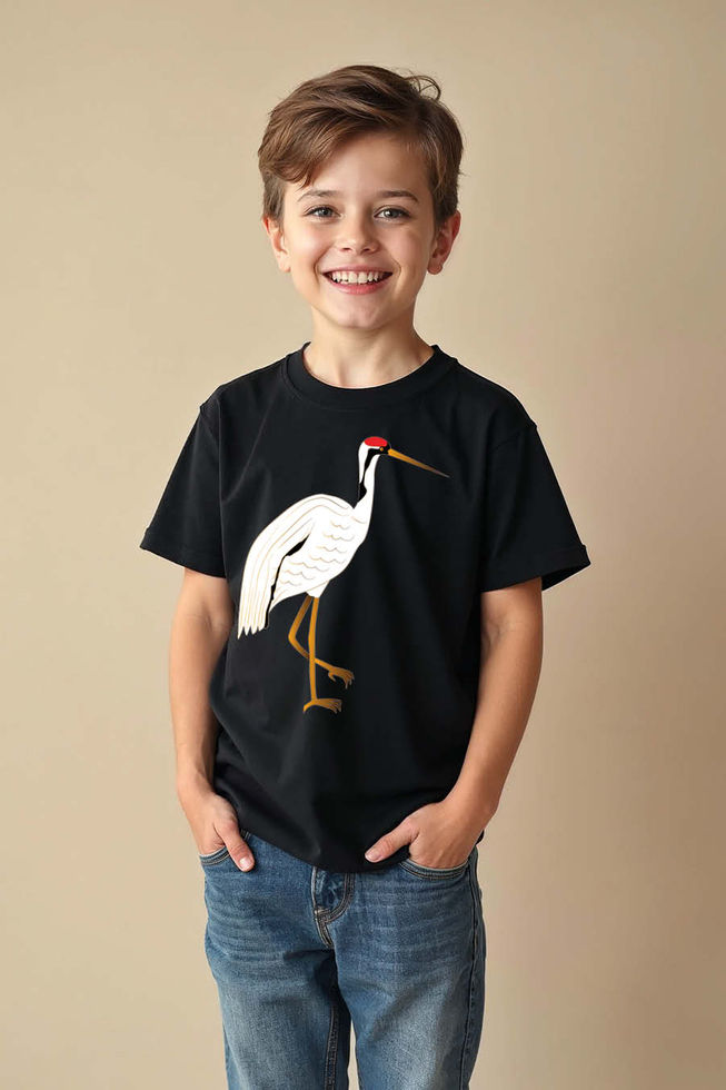 Majestic Japanese Standing Crane Kids T-Shirt Casual Typography Print T-Shirt