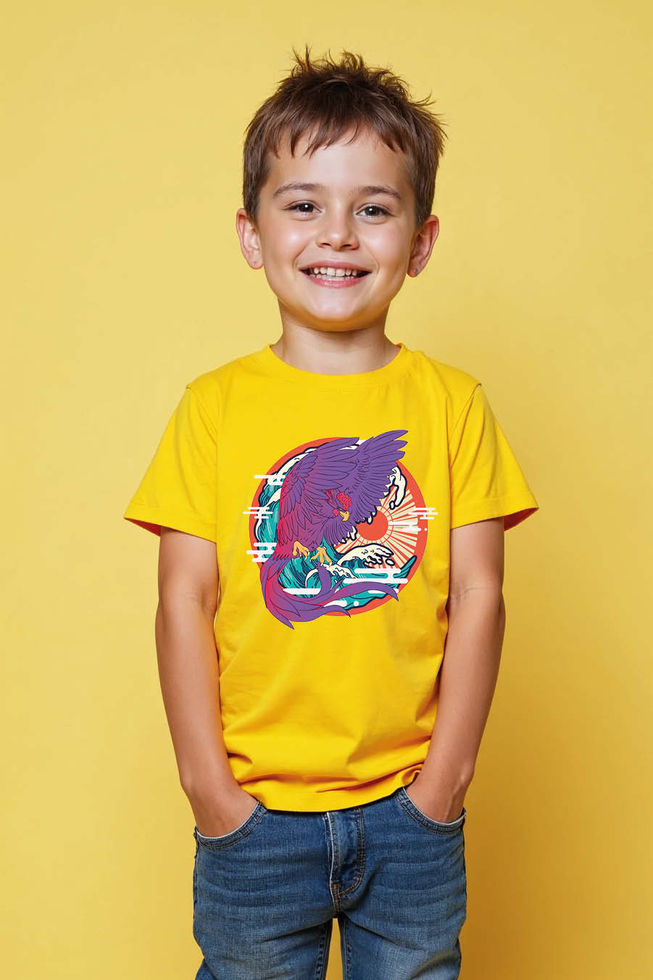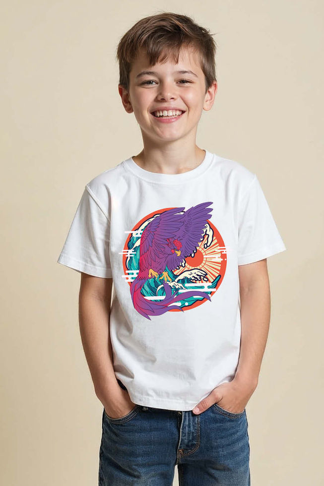 Majestic Phoenix Printed T-Shirt for Kids – Vibrant Mythical Bird with Rising