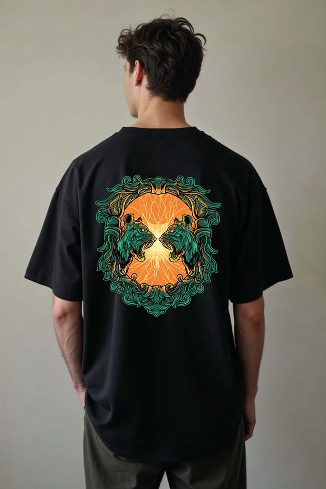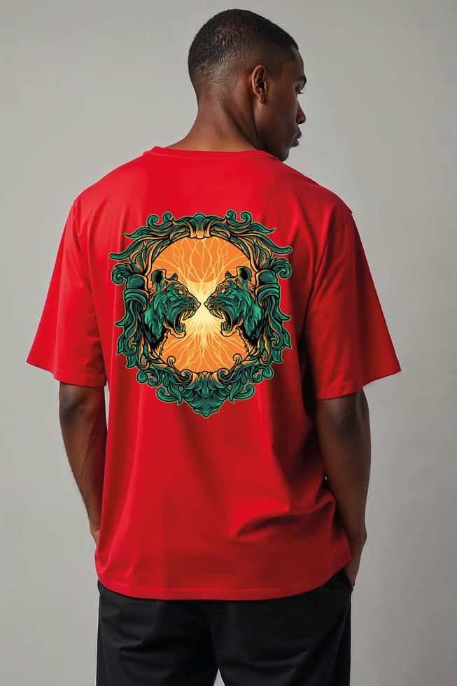 Majestic Twin Lions Medallion Casual Classic Unisex Oversized Drop Shoulder Tees