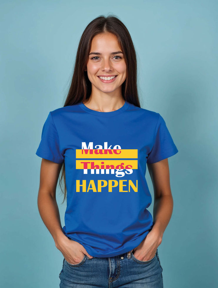 make things happen Trendy Women’s Printed Typography T-Shirt – Buy Now