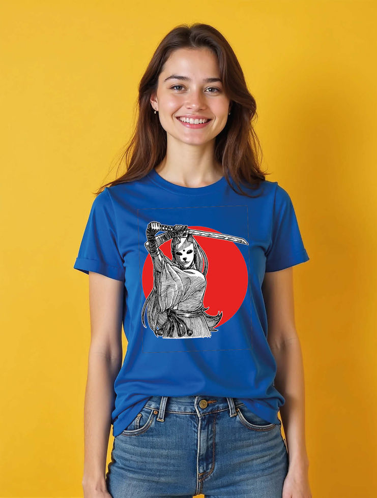 Manga Swordswoman and Red Sun Casual Women’s Printed T-Shirt – Hot Deal