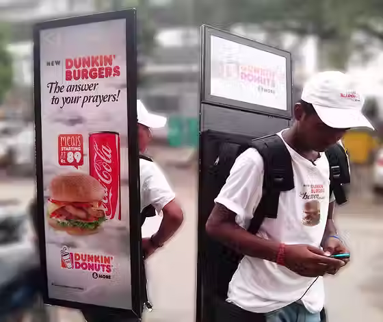 Look Walker is a mobile advertising format which is an effective and efficient way of brand promotion which consists of backlit LED illumination, with front and rear billboards perfectly positioned to view from any angle. The excellent display quality aids in viewing the advertisement even from a distance. Its ultra-slim and light feature makes it easy to carry on human shoulders.