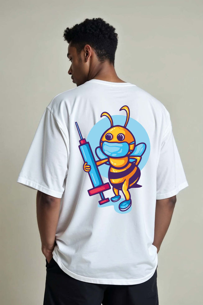 Masked Bee with Syringe Urban Unisex Drop Shoulder Oversized T-Shirt