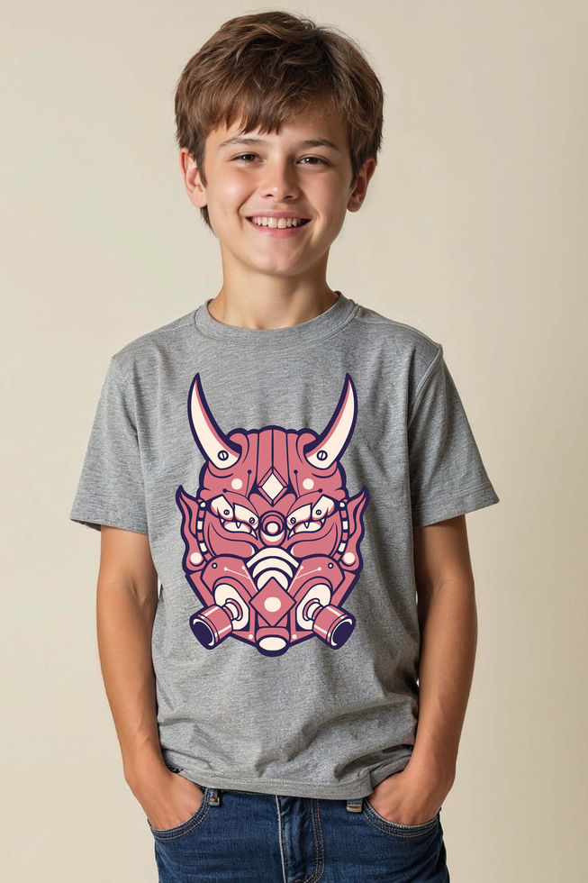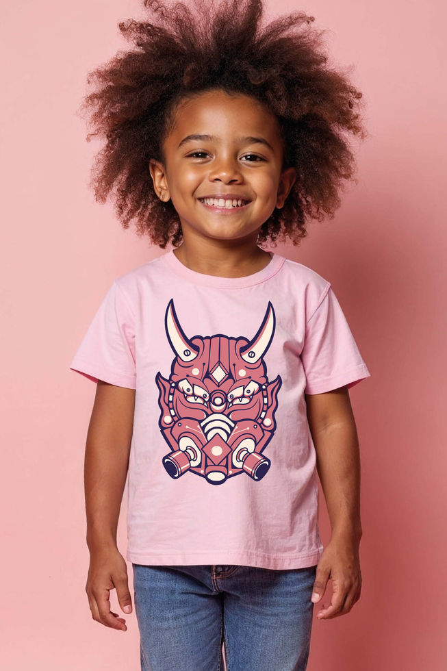 Mecha Cyber Oni Mask Kids T-Shirt Casual Kids Printed T-Shirt – Typography Print