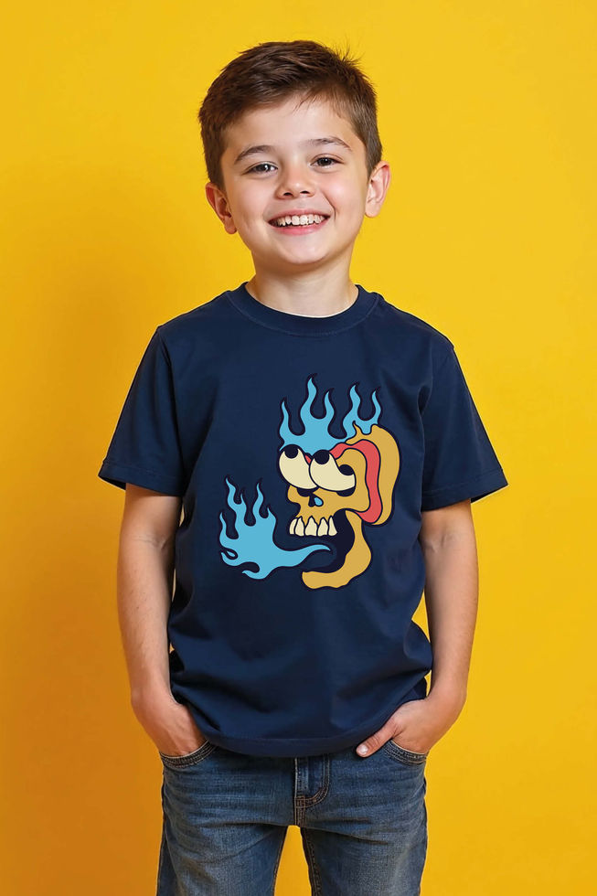 Melting Skull with Flames and Eyeballs T-Shirt Everyday Typography Print T-Shirt