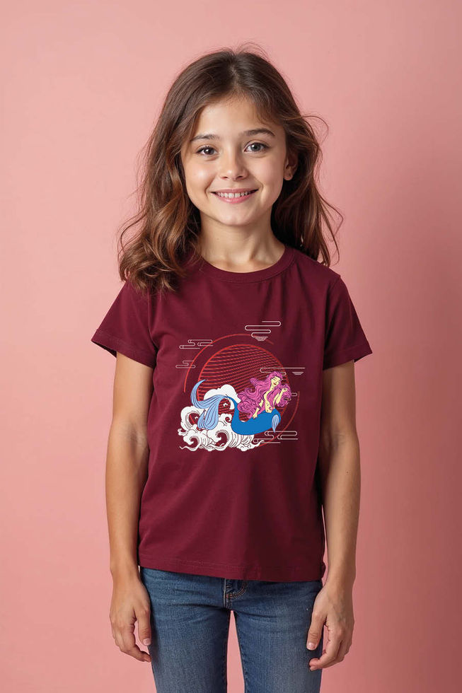 Mermaid and Ocean Waves Printed T-Shirt for Girls – Fantasy Sea Art Tee