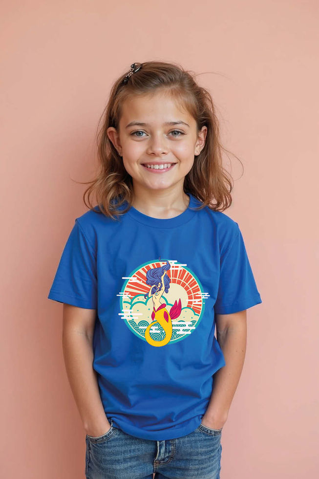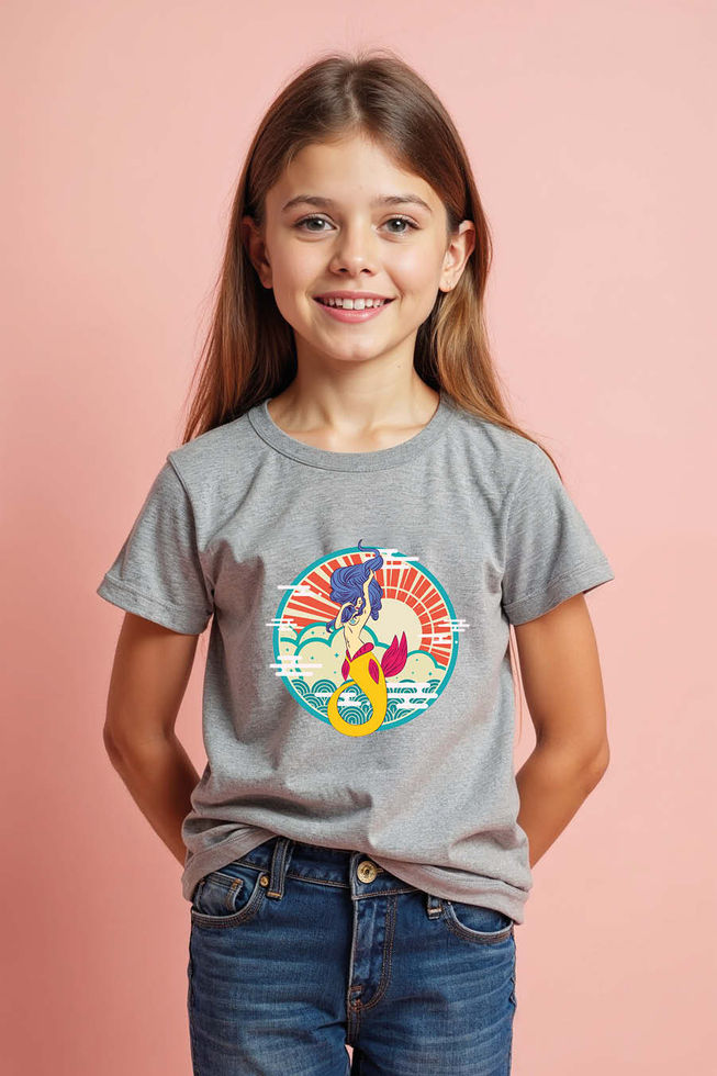 Mermaid Rising Sun Printed T-Shirt for Kids – Vibrant Ocean Fantasy Graphic Tee