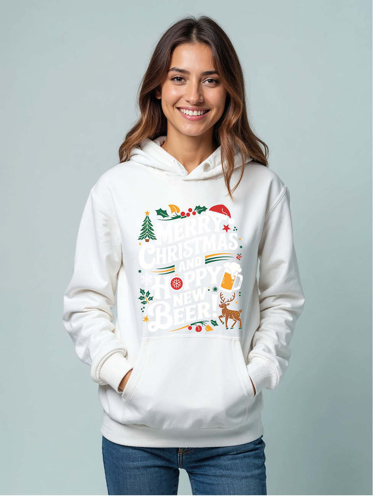 merry christmas and happy new beer Casual Women’s Graphic Hoodies – Hot Deal