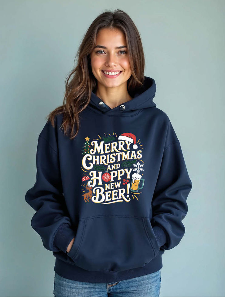 merry christmas and happy new beer Chic Women’s Quote Hoodies – Premium Quality