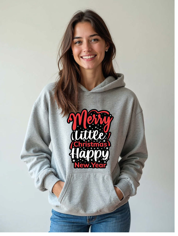 merry little christmas happy new year Woman's Printed Graphic Stylish Hoodies
