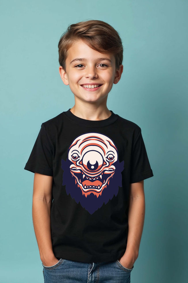 Monstrous One-Eyed Creature Kids T-Shirt Colorful Typography Print T-Shirt