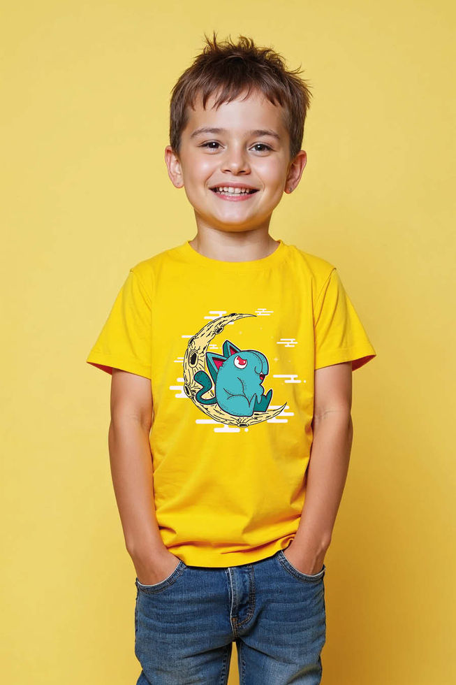 Moonlight Monster Printed T-Shirt for Kids – Cute Blue Character