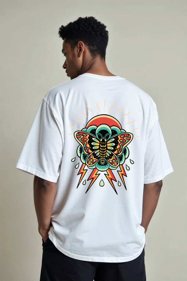Moth Storm Cloud and Lightning Vintage Unisex Drop Shoulder Oversized T-Shirt