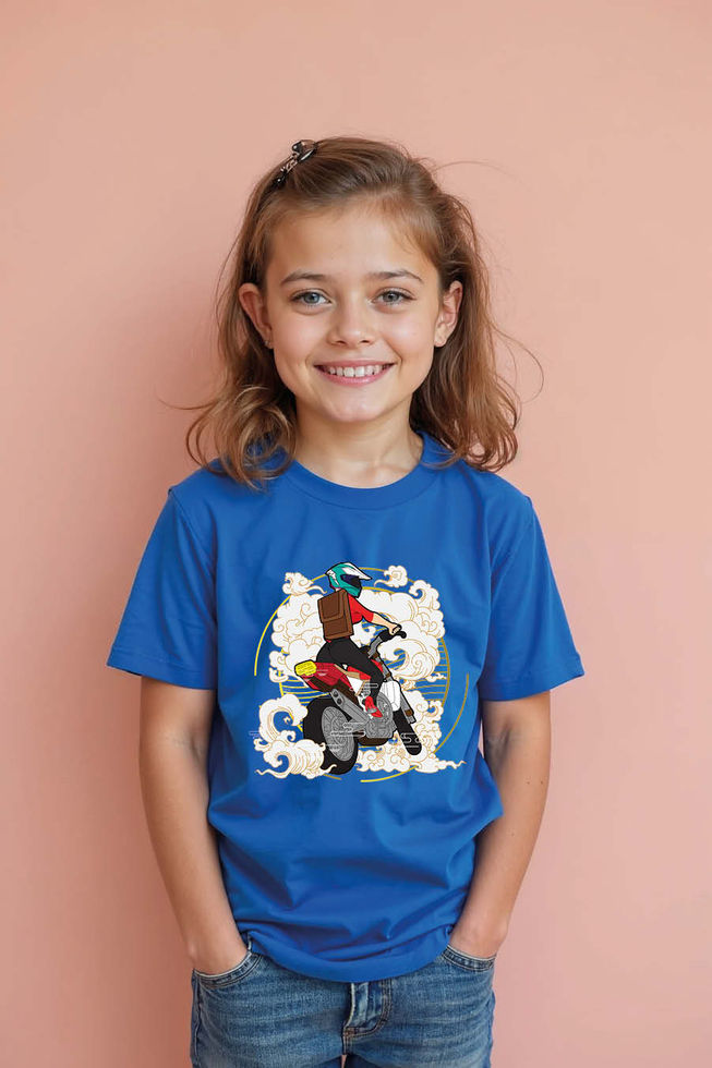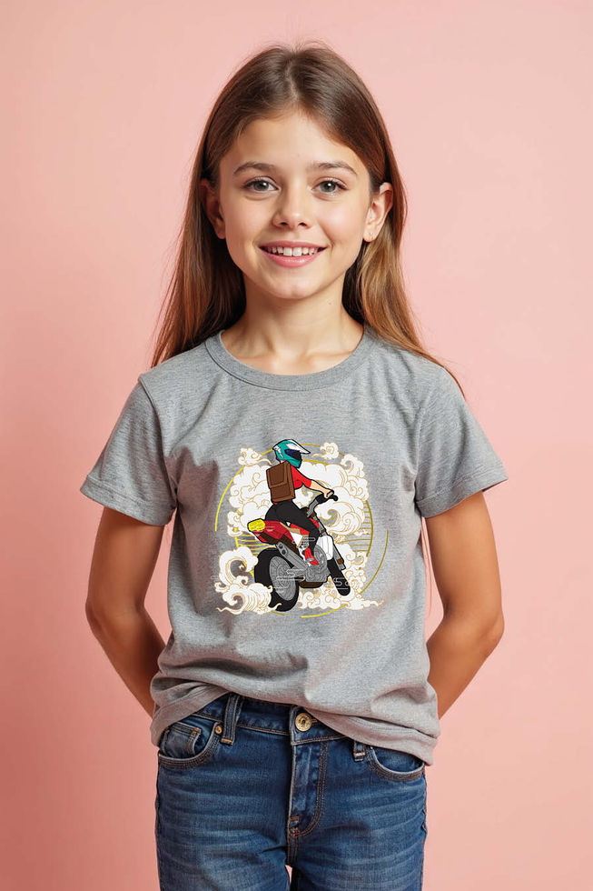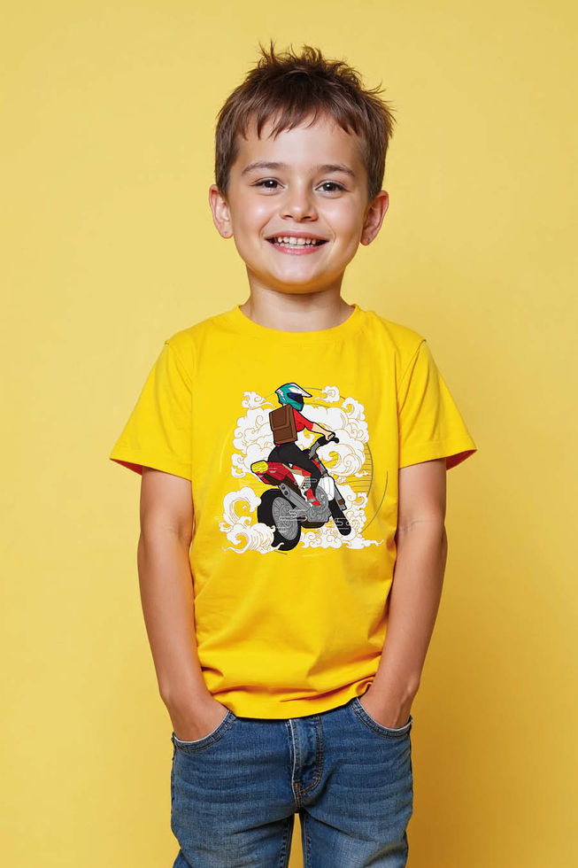Motorcycle Rider Cloud Ring Modern Typography Print T-Shirt for Kids – Print