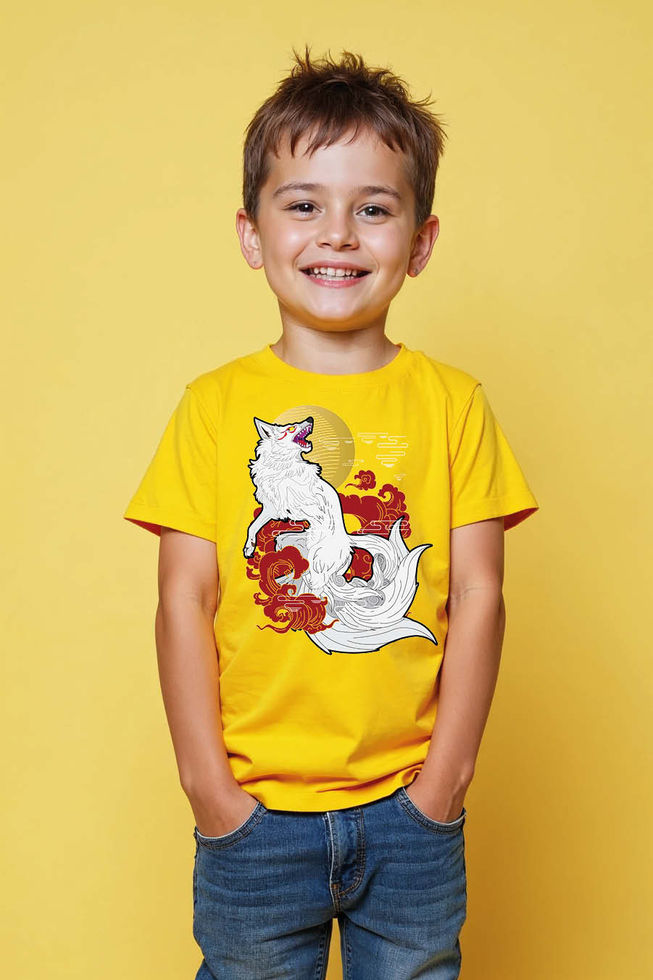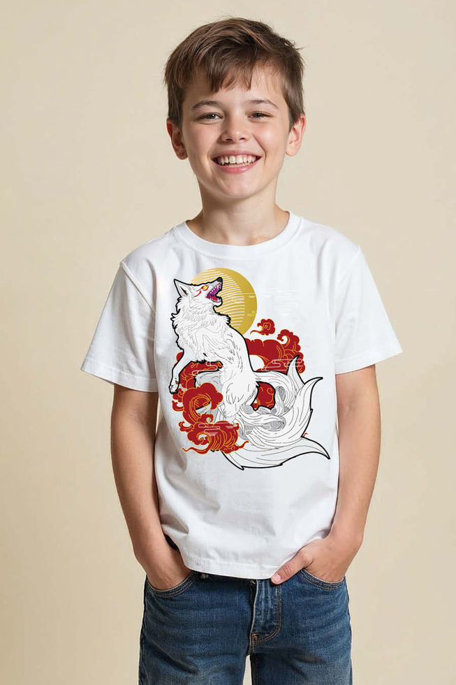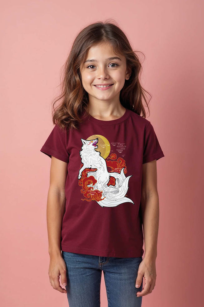 Mystical Fox and Moon Printed T-Shirt for Girls – Elegant Japanese Art Tee