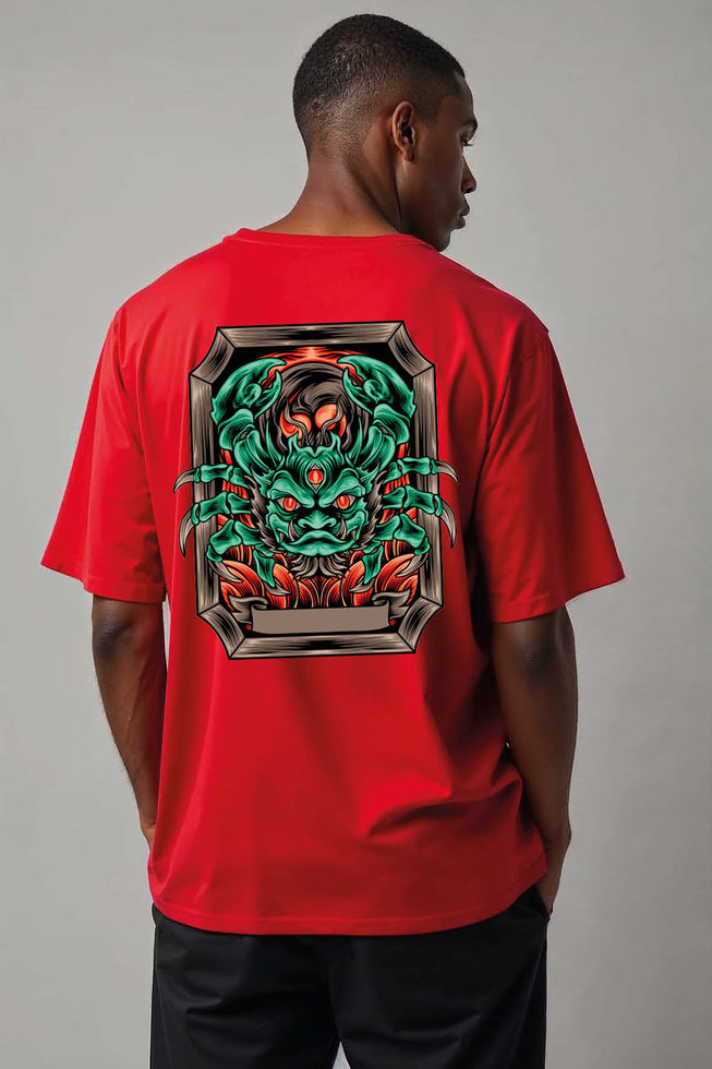 Mythic Green Crab Demon Casual Unisex Drop Shoulder Oversized T-Shirt
