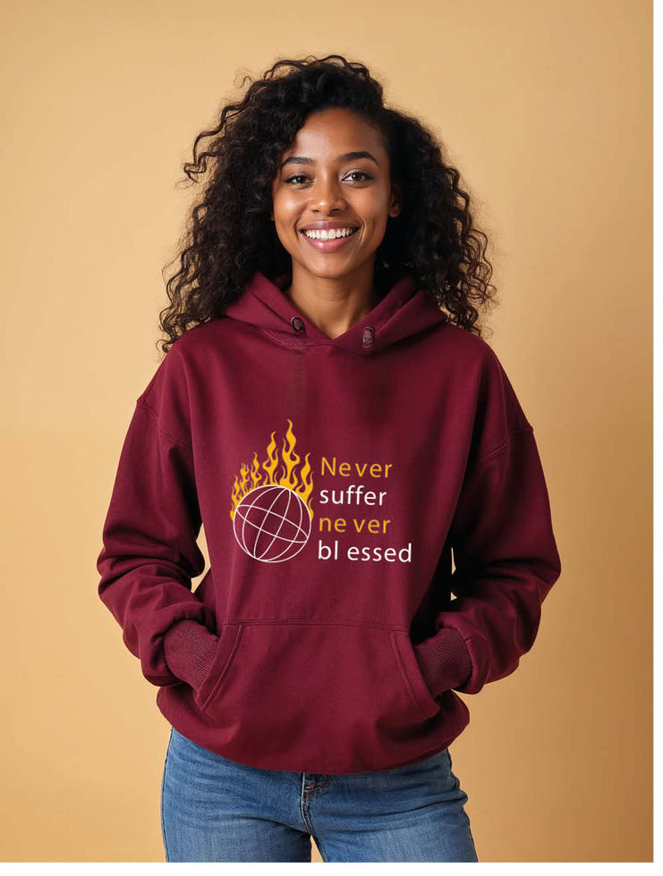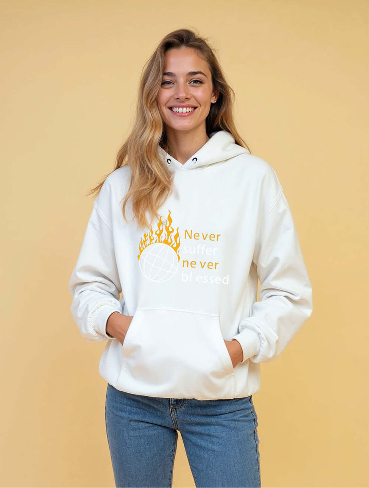 never suffer never blessed Trendy Women’s Printed Quote Hoodies – Buy Now