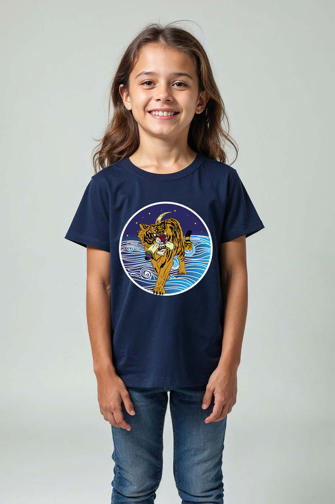 Night Waves Tiger Soft Kids Printed T-Shirt – Graphic Print Design for Boys