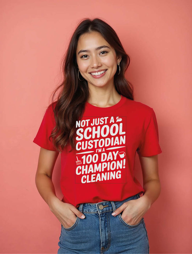 not just a school custodian i'm a 100 day champion! cleaning Cool Women’s Tees
