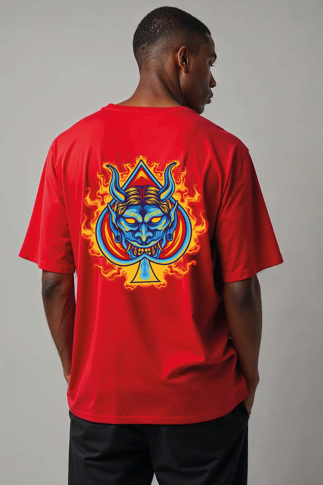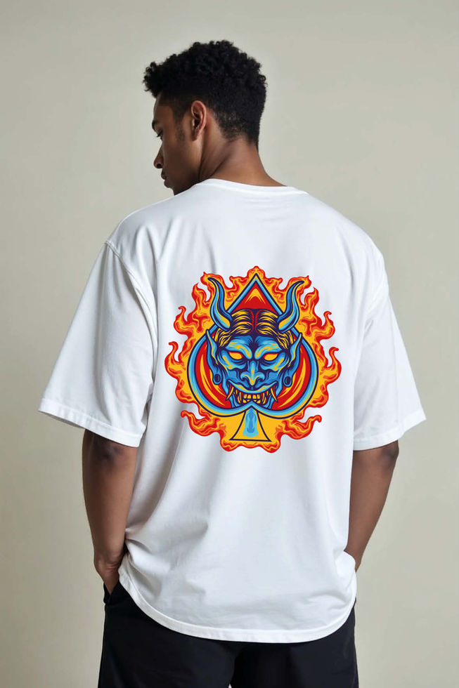 Oni Demon Face Ace of Spades Vintage Unisex Drop Shoulder Oversized T-Shirt