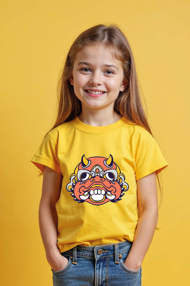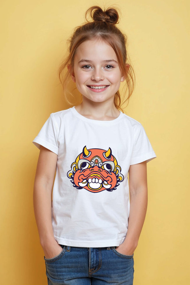 Orange Oni Mask Fashion Casual Kids Printed T-Shirt – Artwork Print Design