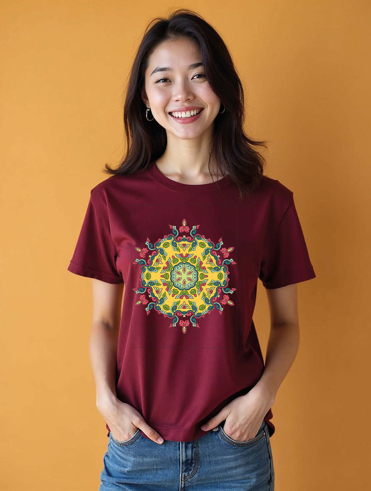 Ornate Yellow and Teal Mandala Modern Women’s Streetwear T-Shirt – Best Price