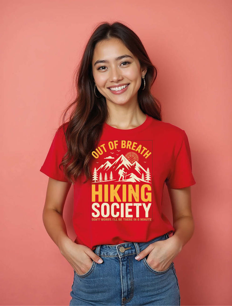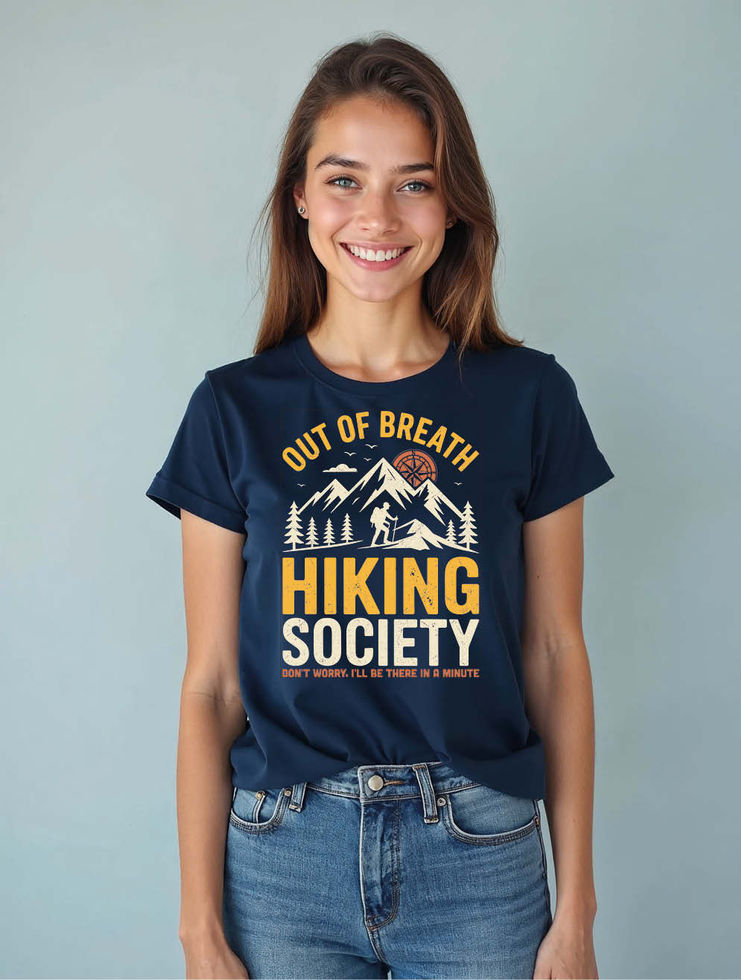 Out of breath hiking society Chic Women’s Quote T-Shirt – Shop Now