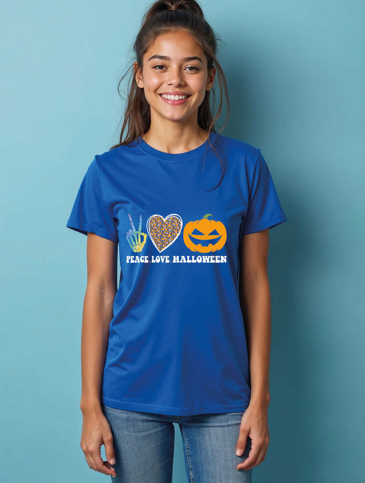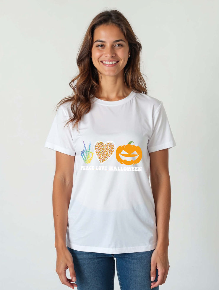 peace love halloween Classic Women’s Printed Graphic Stylish Streetwear T-Shirt