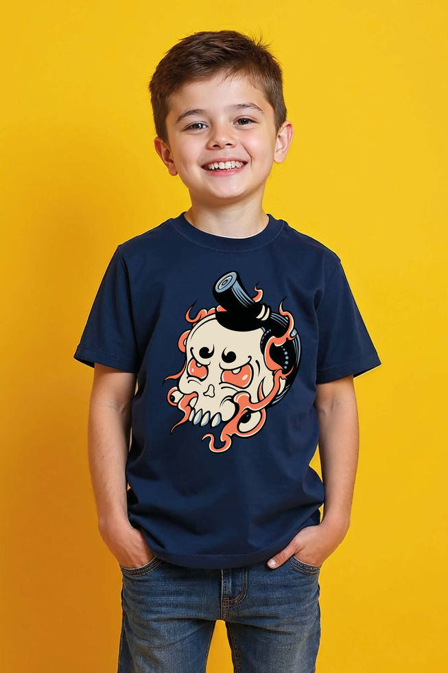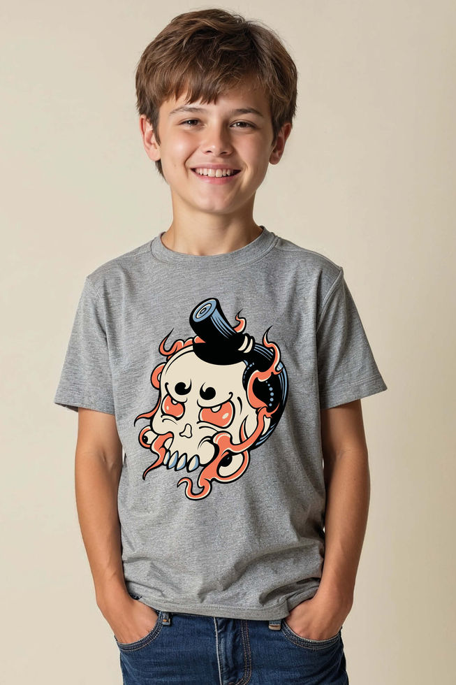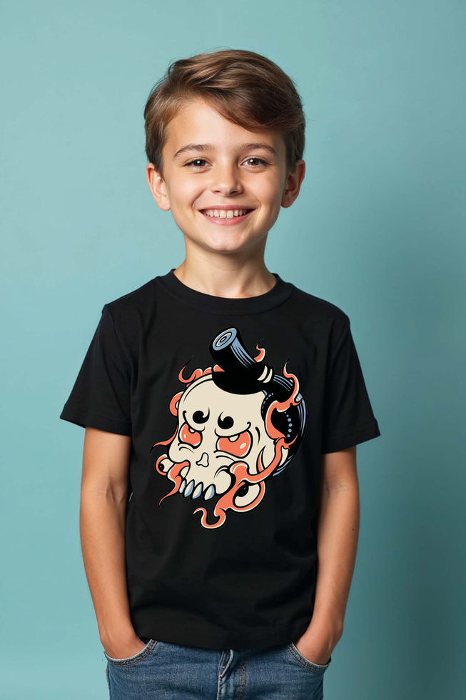 Pompadour Skull Colorful Kids Printed T-Shirt – Character Print Design