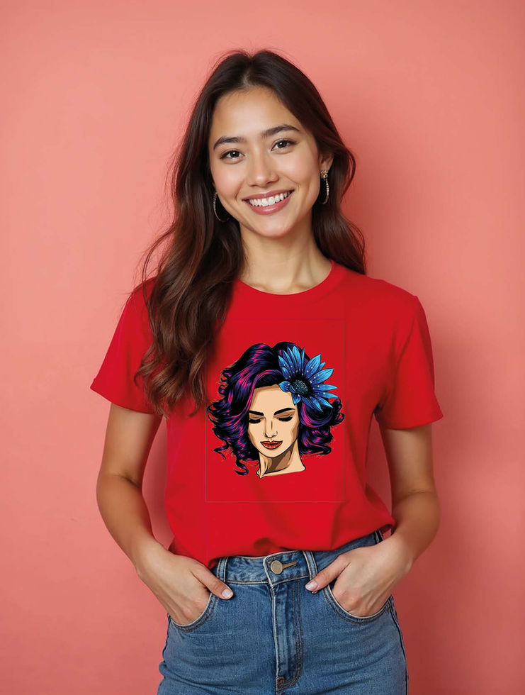 Pop Art Woman with Blue Flower Casual Women’s Printed Graphic Streetwear T-Shirt