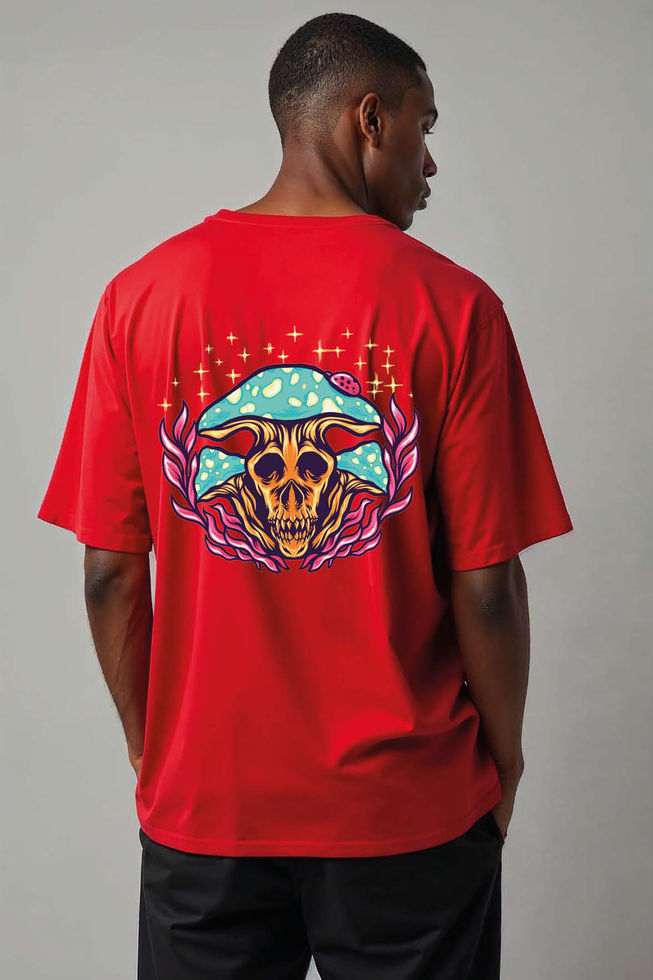 Psychedelic Skull Mushroom Classic Cotton Unisex Drop Shoulder Oversized T-Shirt
