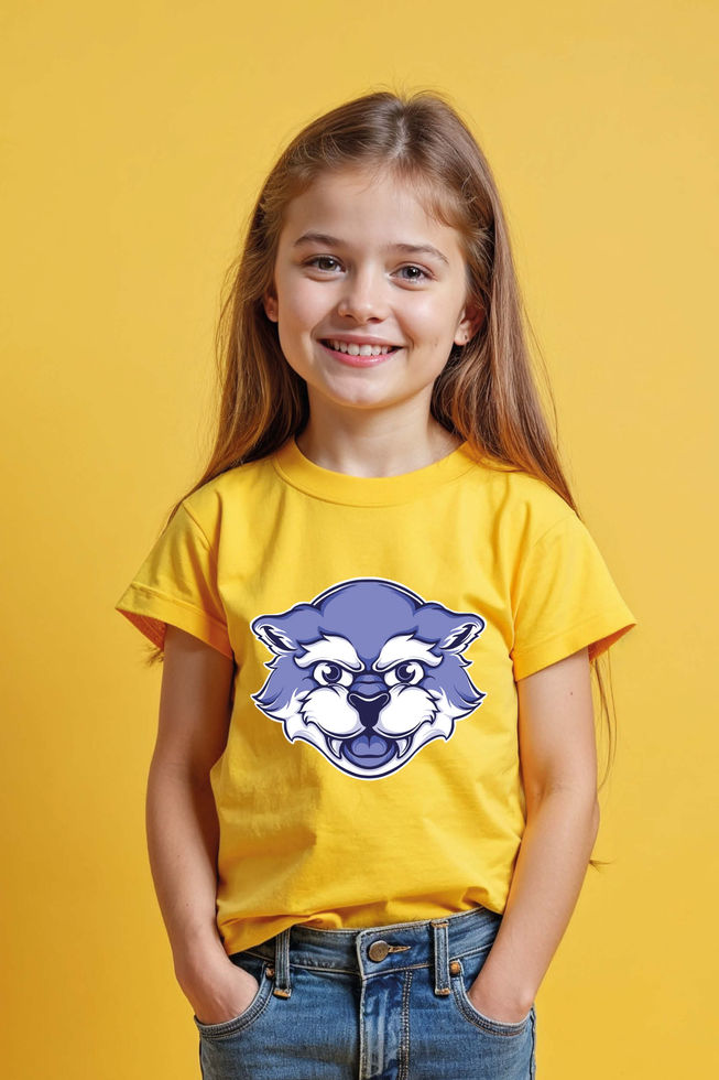 Purple Wolf Mascot Comfortable Typography Print T-Shirt for Kids – Character