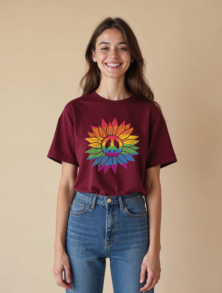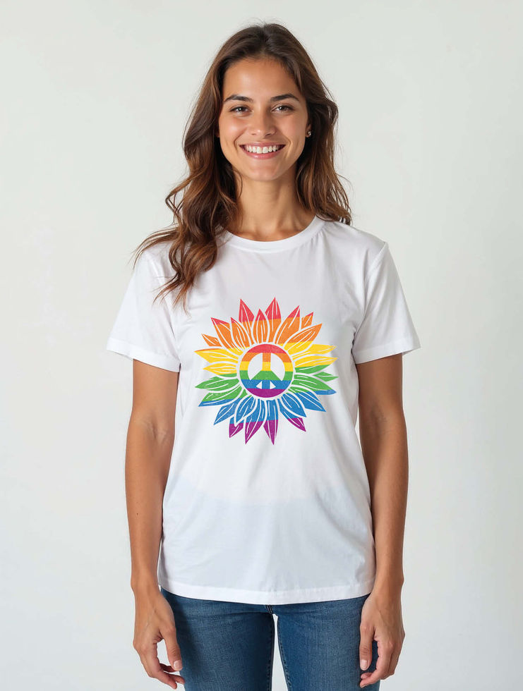 Rainbow Pride Peace Sunflower Classic Women’s Printed Graphic Streetwear T-Shirt